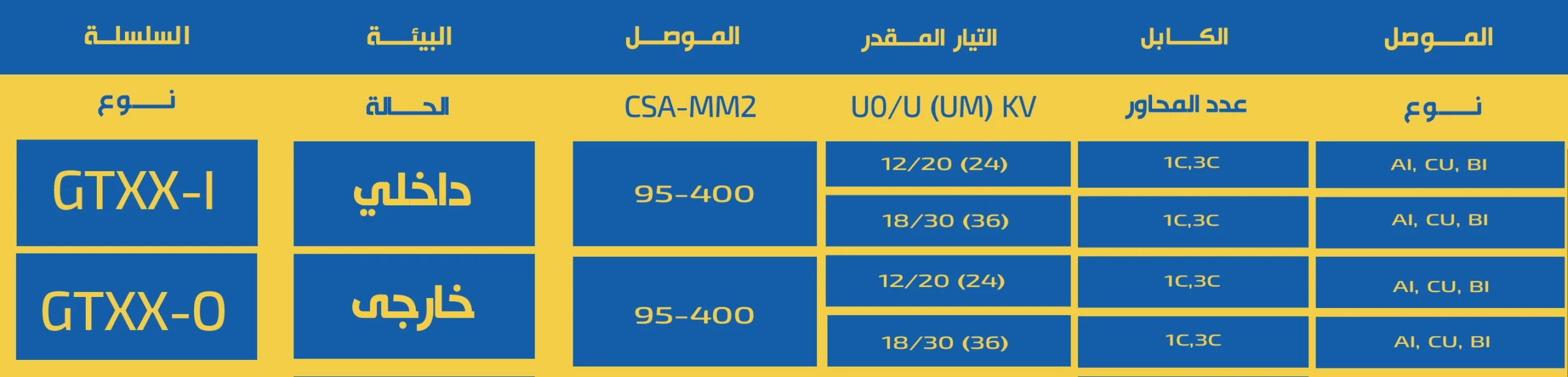 تستخدم على نطاق واسع في تطبيقات متعددة مثل توزيع الطاقة، المحطات الفرعية، مفاتيح القواطع، المنشآت الصناعية والتجارية، مشاريع الطاقة المتجددة، وكذلك التركيبات البحرية والمرافئ، للكابلات ذات مستويات الجهد حتى 36 كيلو فولت.